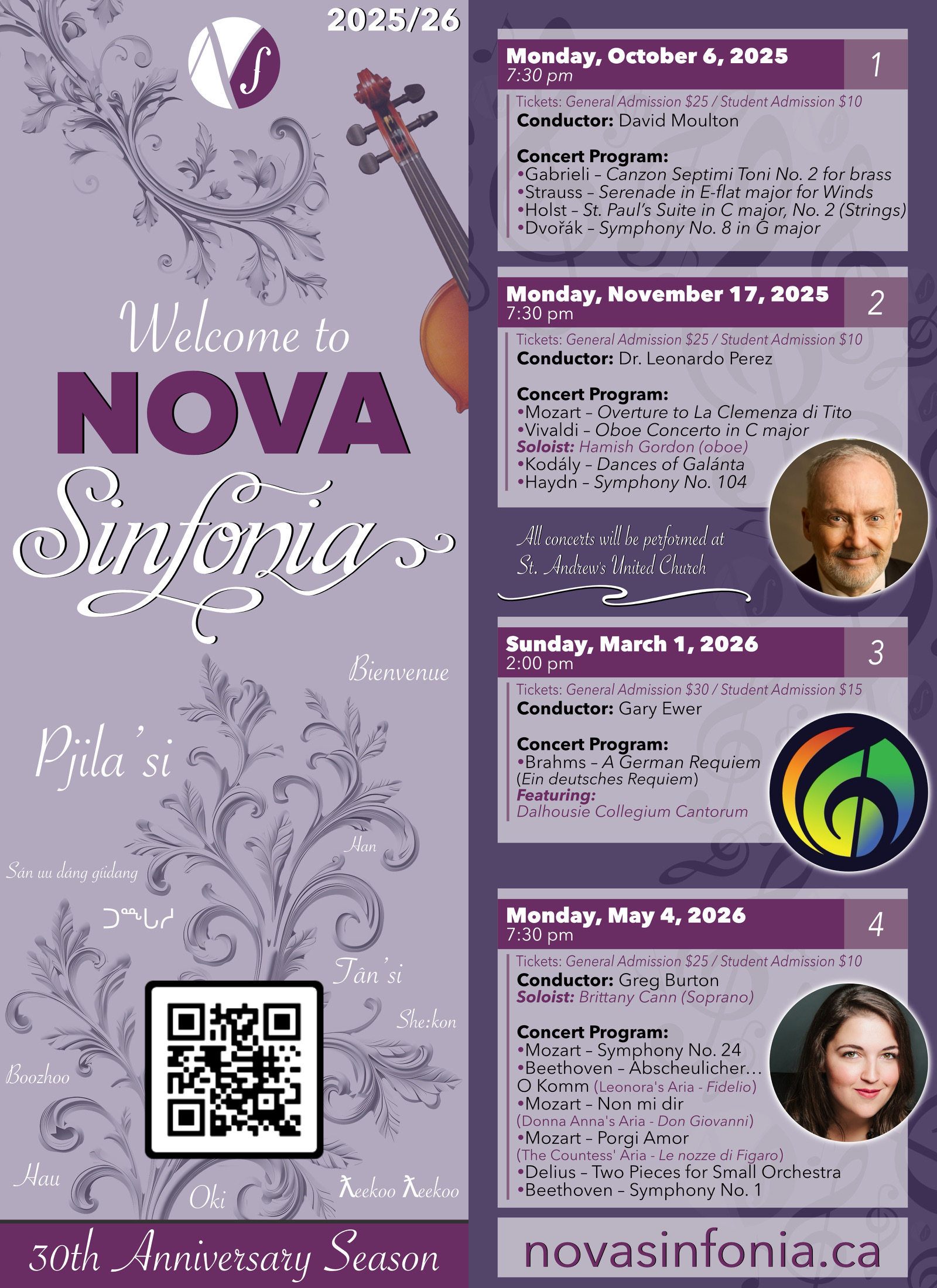 Welcome to the 30th Anniversary Season of Nova Sinfonia. Below is a sneak peek of our 2025-2026 season. We hope to see you at the Stage at St. Andrew's!